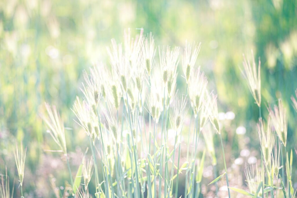 ちょっと前まで膝ぐらいだった小麦が、いつの間にか腰ぐらいの高さになってた。