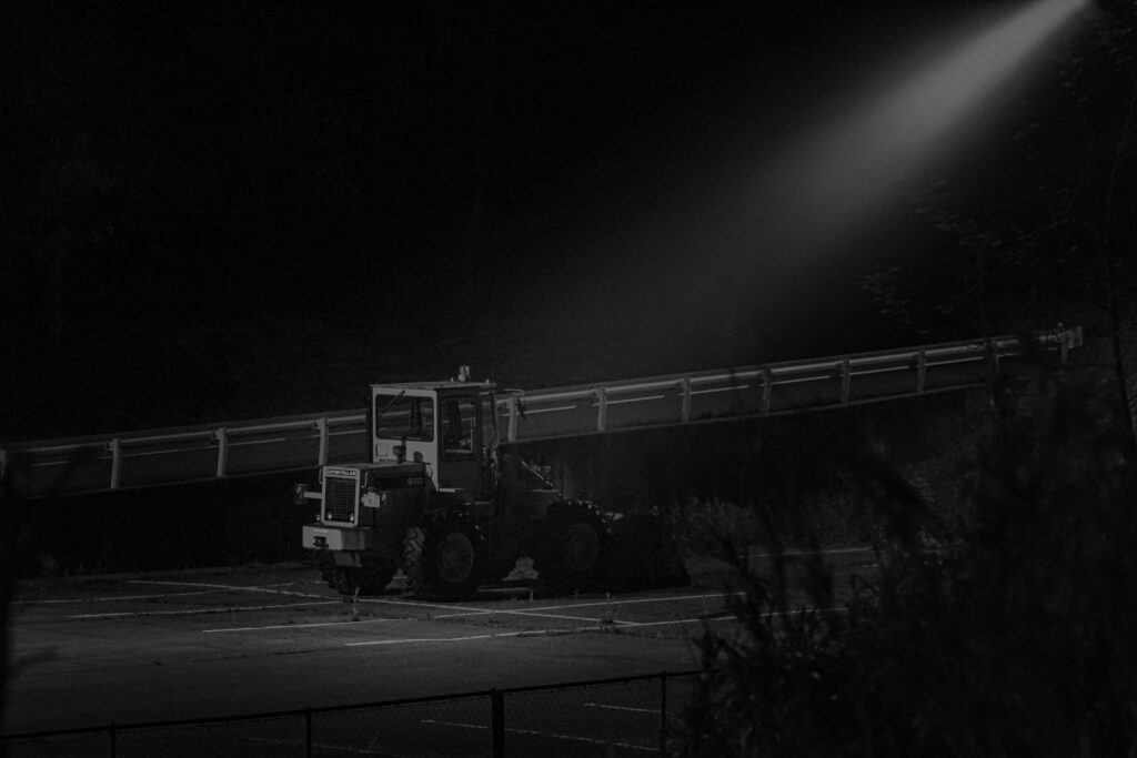 ライトアップされてる重機。
